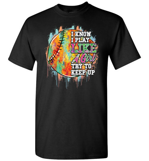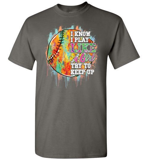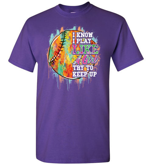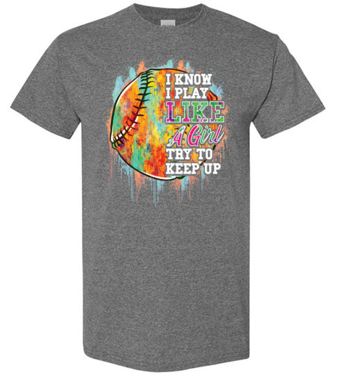 Watercolor Softball I Know I Play Like A Girl Gildan Youth